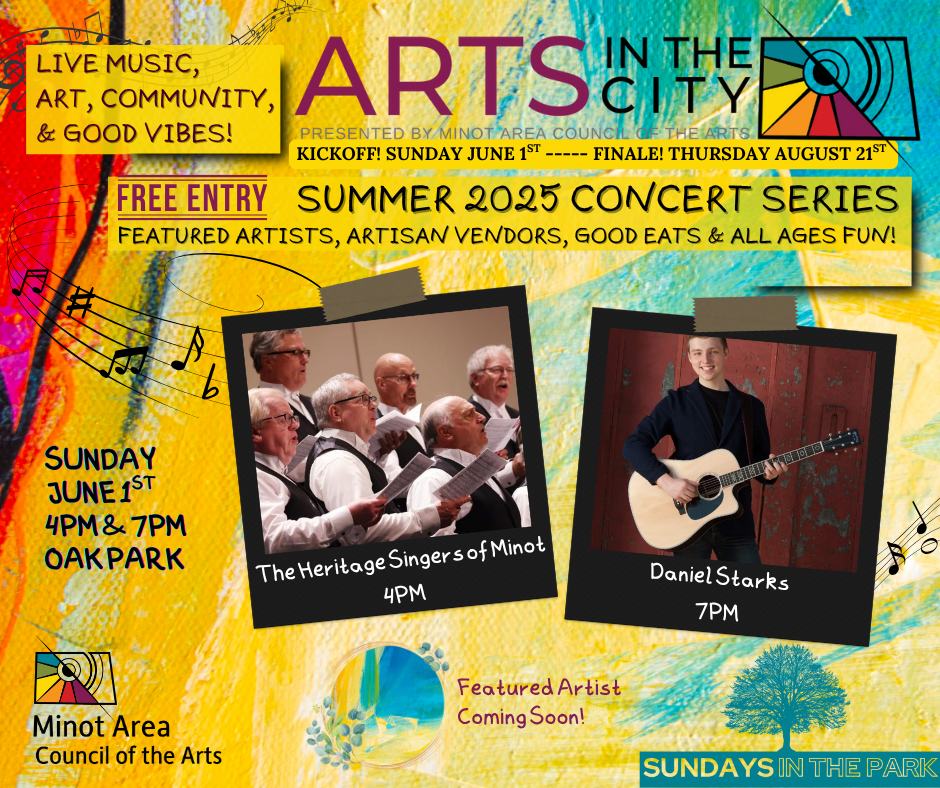2025 Arts in the City – Jun 1st Oak Park 4:00 pm The Heritage Singers / 7pm Daniel Starks + Add to Google Calendar + iCal / Outlook export Tags: Daniel Starks, The Heritage Singers Date Jun 01 2025 Expired! Time 4:00 pm - 7:00 pm Location Oak Park Category Arts in the City Organizer MACA Share this event